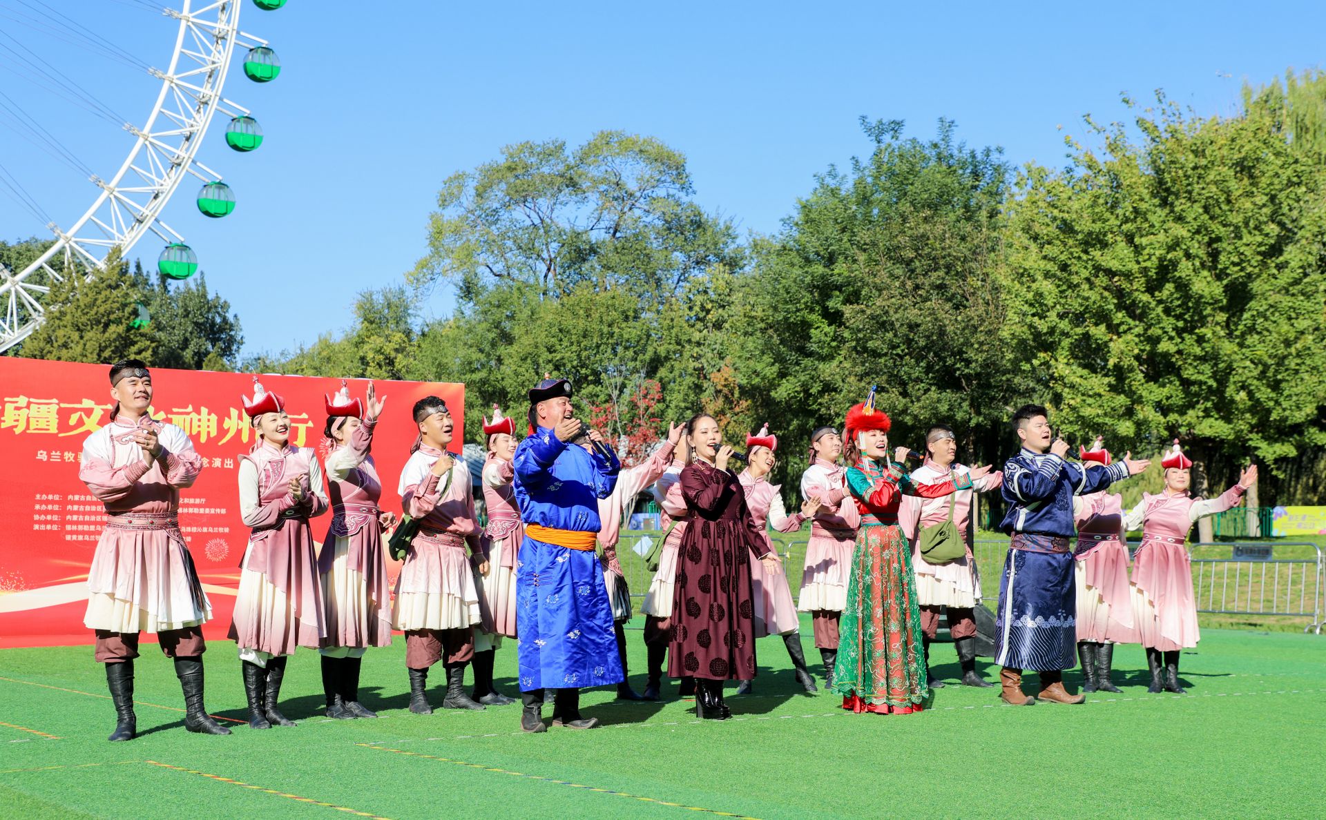 馬頭琴聲起,長調(diào)破秋空。當(dāng)《贊歌》的悠揚(yáng)旋律在龍?zhí)吨泻珗@的草坪上回蕩,錫林郭勒烏蘭牧騎隊(duì)員孟克的長調(diào)順勢融入,與琴聲交織出奇妙的草原交響。