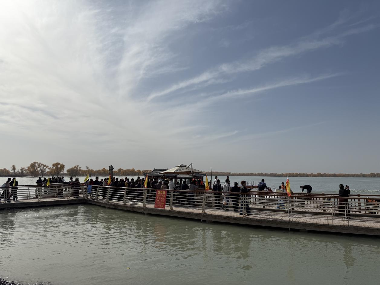 游客在沙雁洲景區(qū)觀賞水中胡楊