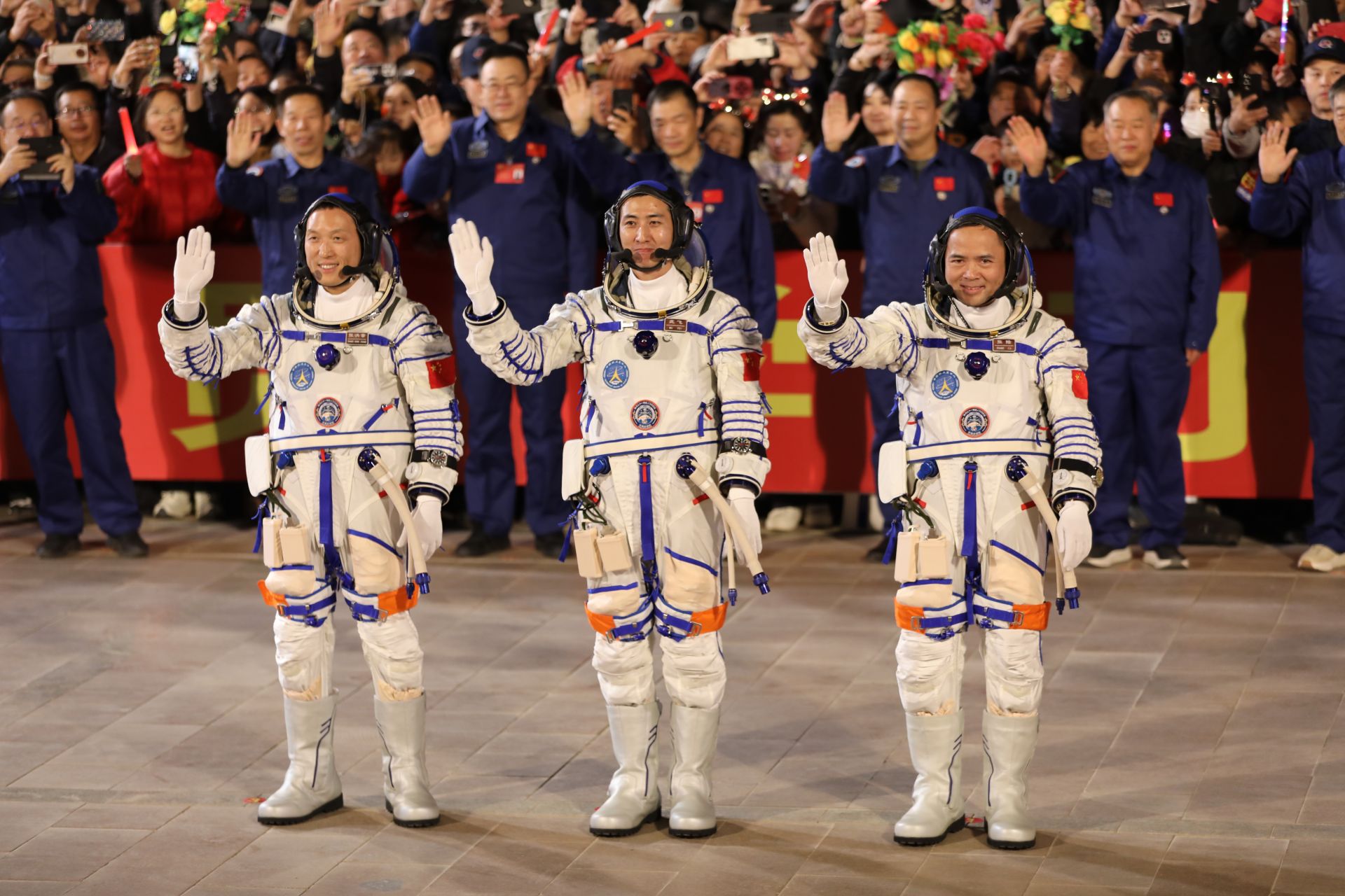 張陸、武飛、張洪章3名航天員領(lǐng)命出征。