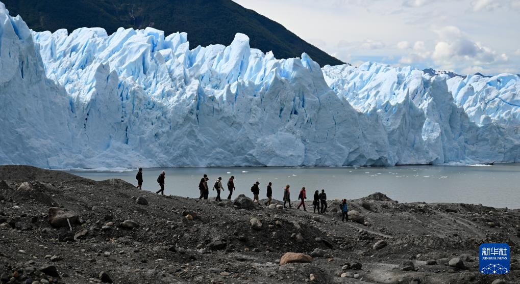 1月3日,游客在阿根廷圣克魯斯省冰川國(guó)家公園內(nèi)的莫雷諾冰川附近行走。