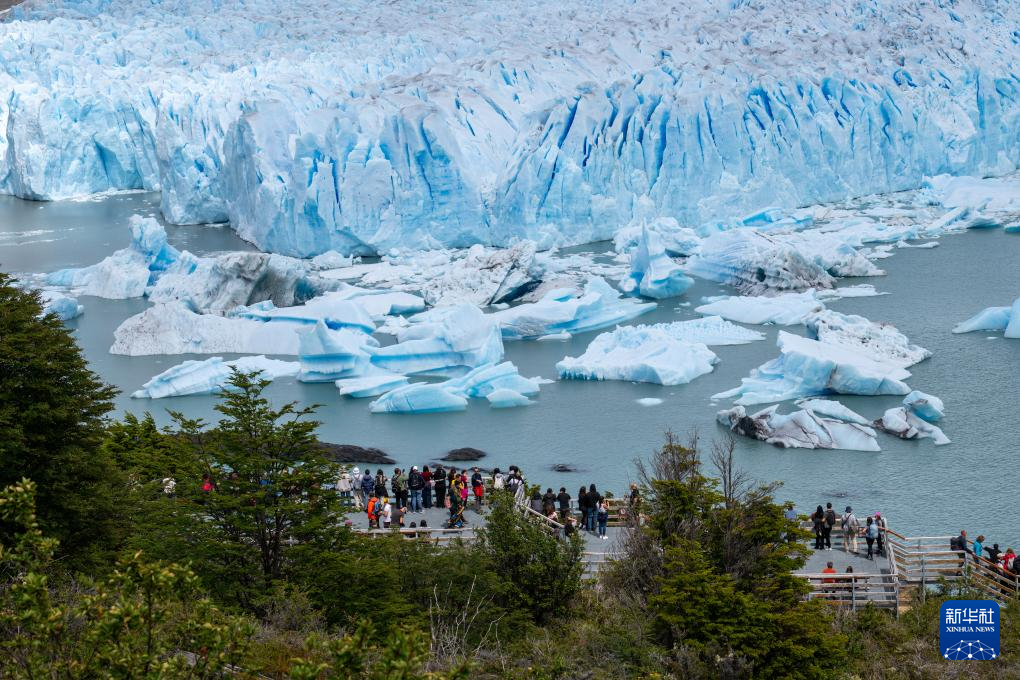 1月3日,游客在阿根廷圣克魯斯省冰川國(guó)家公園觀賞莫雷諾冰川。