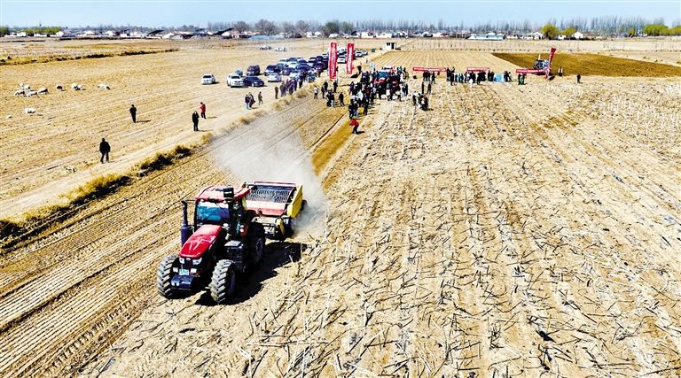 4月8日,在巴彥淖爾國(guó)家農(nóng)高區(qū)智慧農(nóng)業(yè)示范園區(qū),一臺(tái)集旋耕、起壟、鎮(zhèn)壓、覆膜、滴灌、播種于一體的新式農(nóng)機(jī)現(xiàn)場(chǎng)演示作業(yè),展現(xiàn)了當(dāng)?shù)赝苿?dòng)農(nóng)機(jī)裝備向高端智能升級(jí)的成果,為春耕生產(chǎn)提供了科技支撐。草原云·正北方網(wǎng)記者 薄金鳳 攝