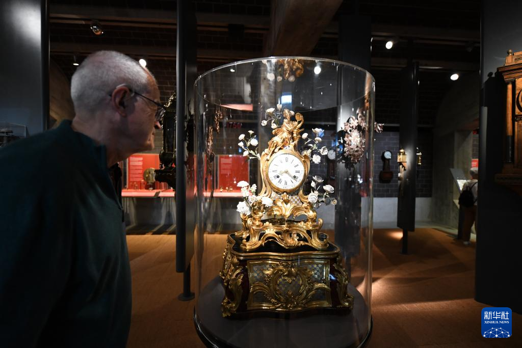 4月12日,人們在瑞士拉紹德封的國際鐘表博物館內(nèi)觀看展品。