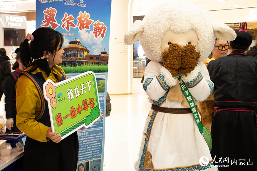 吉祥物呼倫小羊在現(xiàn)場進行文旅宣傳。實習(xí)生 張詩婕 攝